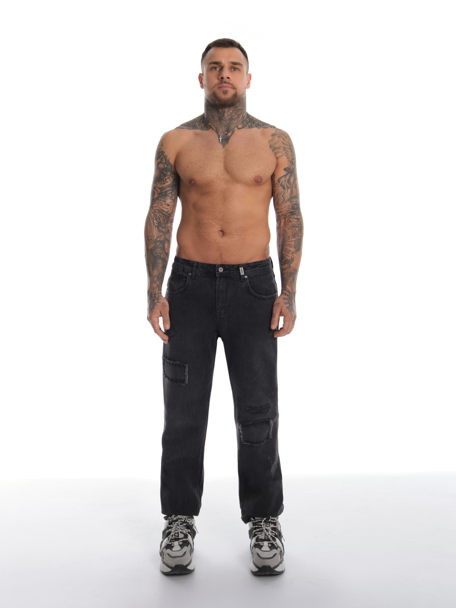 Джинсы прямого кроя на средней посадке. Сшиты из плотной и качественной джинсы, которая прослужит вам долгое время. Рваный эффект. Брендированные кнопки и пуговицы.