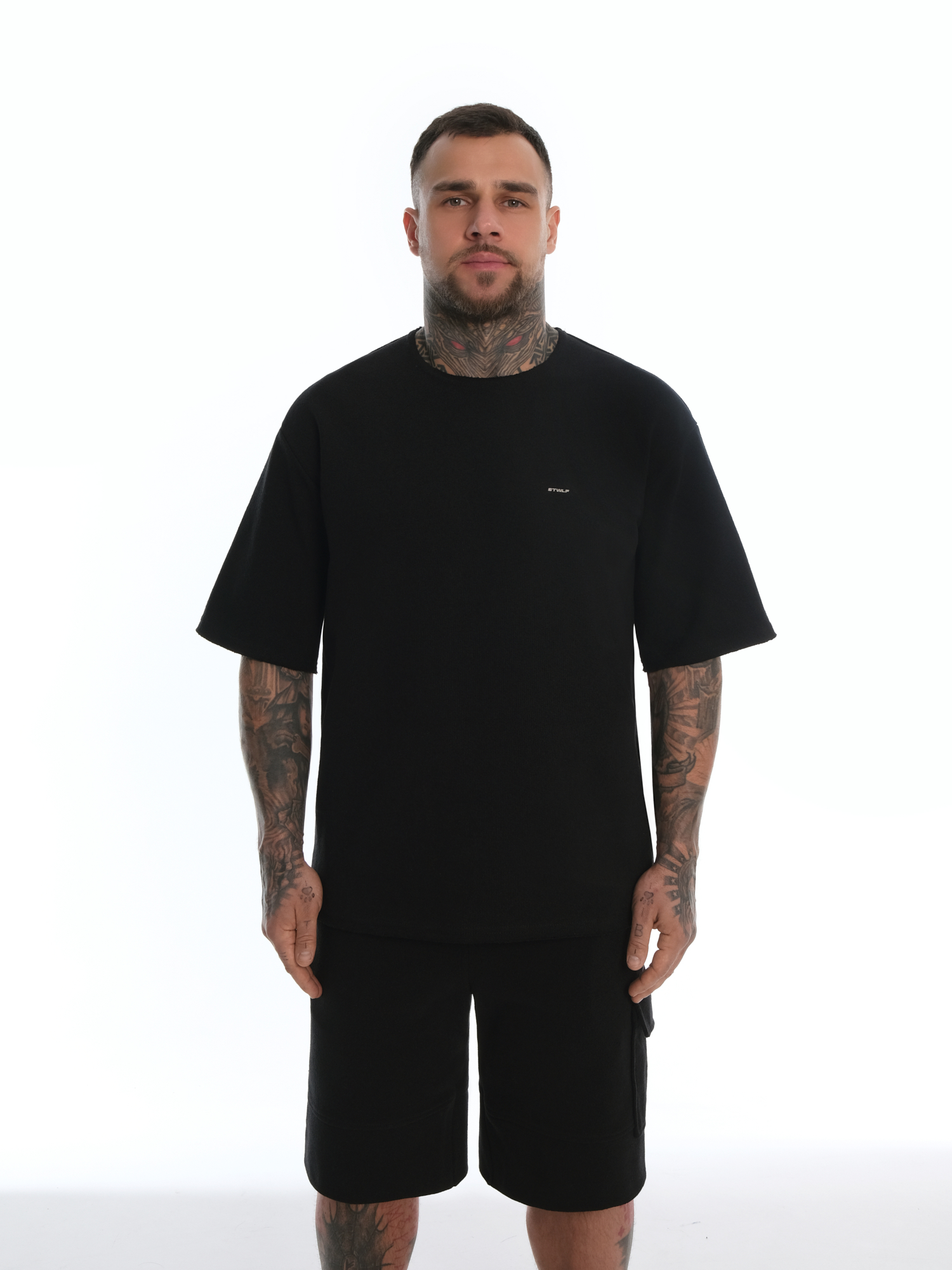Футболка с эффетом вязки | черный бренд STWLF - фото