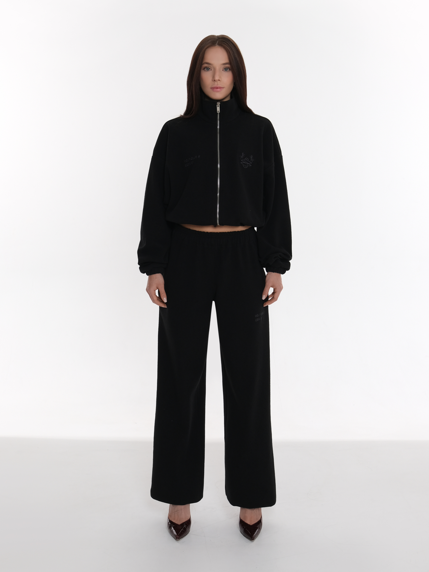 Этот женский костюм выполнен в благородном цвете черный, который дарит образу мягкость и естественную элегантность. Текстура ткани создает объем и неповторимый уют, визуально напоминая дорогой трикотаж, , но при этом сохраняет легкость и практичность современных материалов. В комплект входят:· Свободная толстовка на молнии: Удобная застежка-молния позволяет регулировать степень открытости. Низ толстовки собран на стильную кулиску, благодаря которой вы можете менять силуэт, делая его как прямым, так и более собранным и женственным.· Спортивные брюки прямого кроя: Идеально дополняют верх, создавая гармоничный комплект. Этот костюм станет вашим любимым вариантом для прогулок и встреч с друзьями.