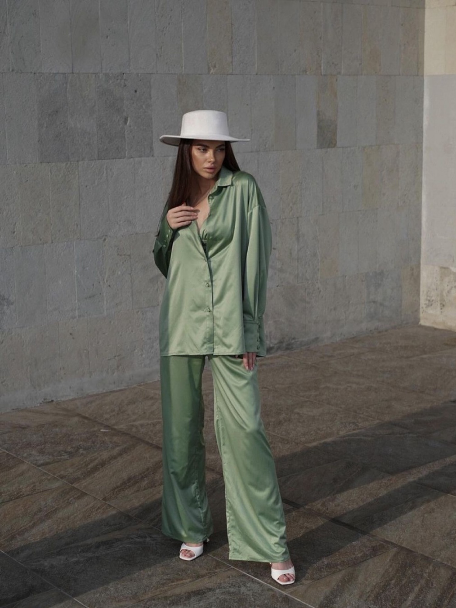 - брюки палаццо свободного кроя на резинке + рубашка oversize